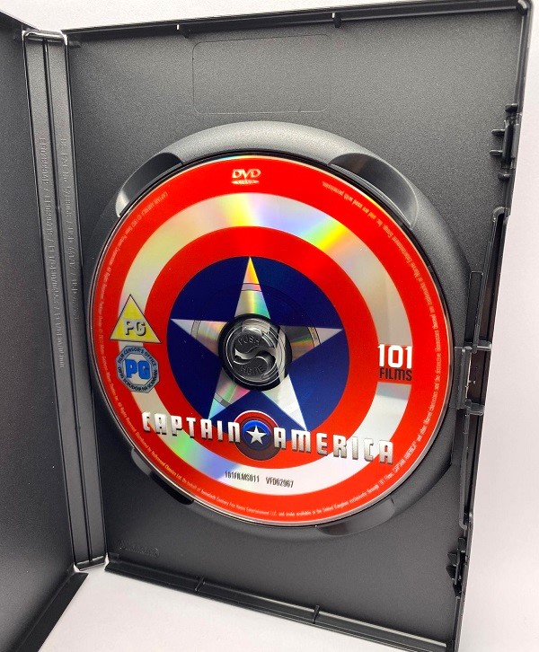 Now, as Captain America is a niche title, and probably only for enthusiasts and curious Cap fans alike, this was a barebones release from 101 Films – so there’s nothing on the disc other than the movie. However, as noted above, the cover art is good, and just look at that disc!