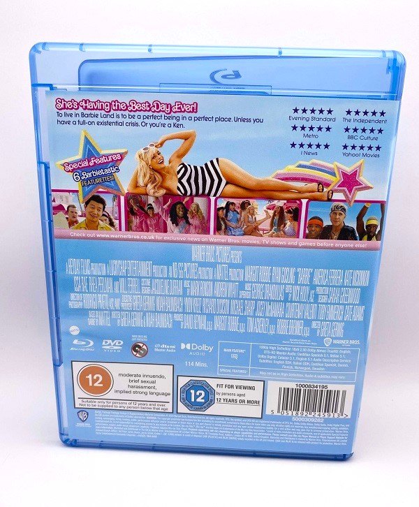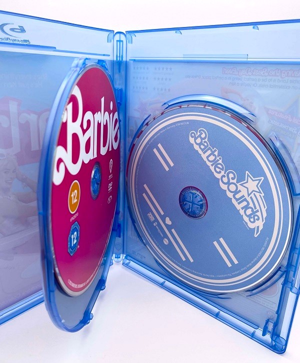 The Barbie – Movie and Soundtrack Collection includes two copies of the film, one on DVD and one on Blu-ray, as well as a copy of the soundtrack on CD (titled ‘Barbie Sounds’). The three discs are contained within a standard Blu-ray case.