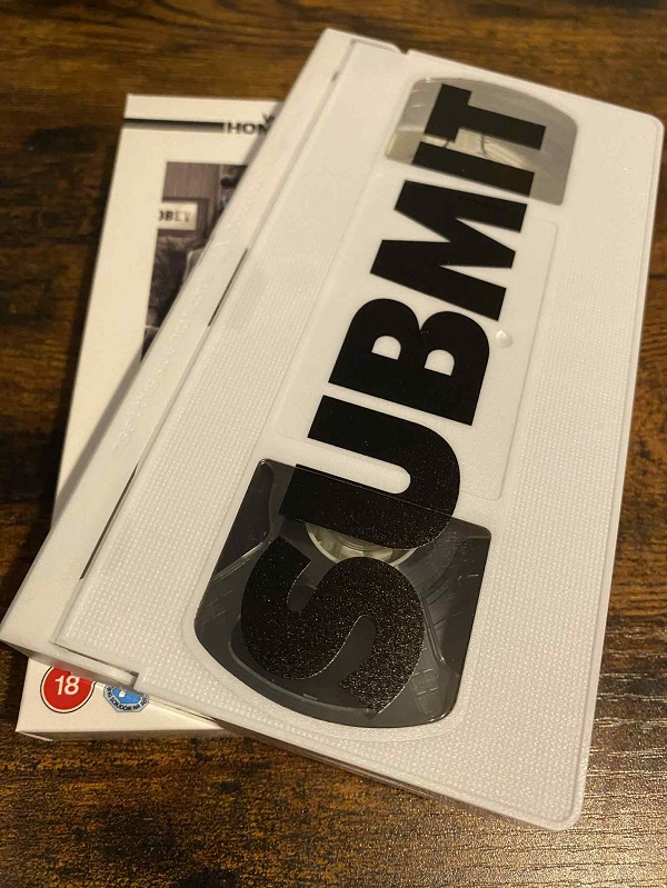 As for the tape itself, the guys and gals at Vice Press have leaned into an aspect of the film – the subliminal messaging – and incorporated this into the cassette design. Printed on a white tape is the word ‘SUBMIT’ written in black lettering.